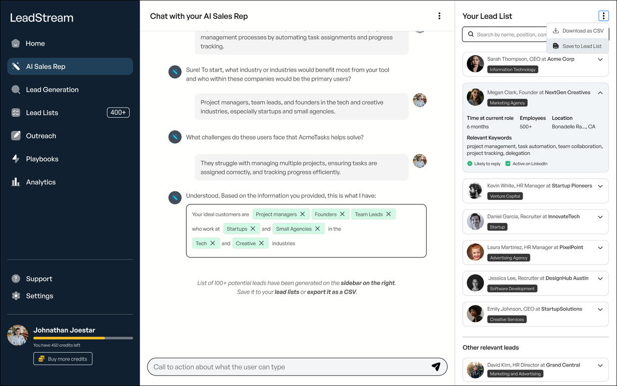 Qualify and prospect leads on autopilot with your personal AI sales representative